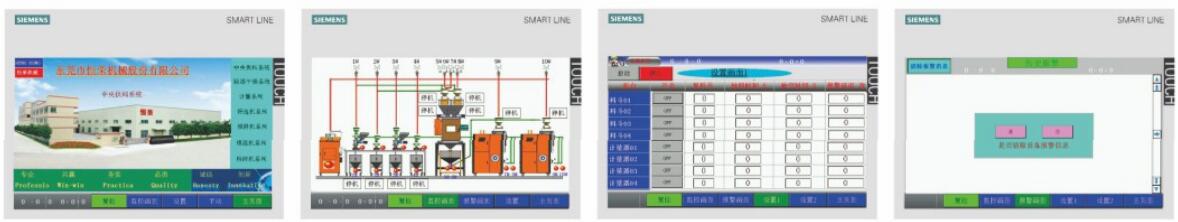 ● 显示屏可清楚显示出机台、干燥桶、料桶之动转状态,如开机、满料,缺料及原料等: